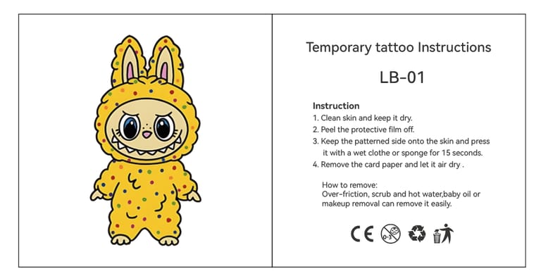 Customizable 2 Inch Labubu Kids Temporary Tattoo Sticker for Face Body for School Promotions Anniversary Party Events